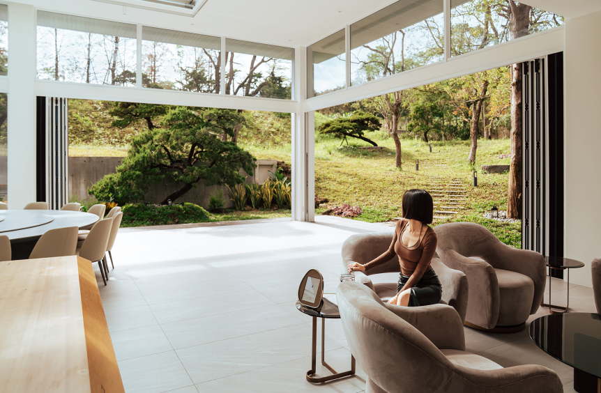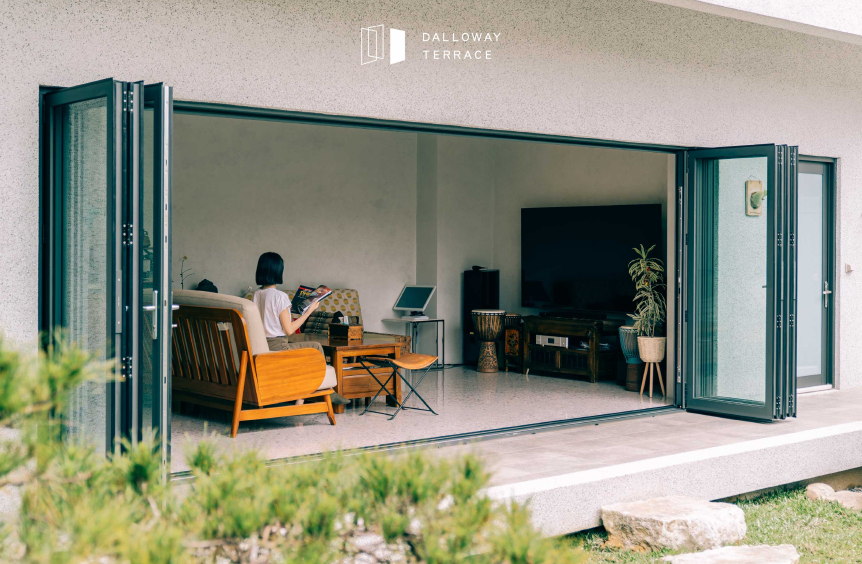 英國知名文學名著《達洛維夫人Mrs.Dalloway》的故事開章寫著:「達洛維夫人為家庭宴會忙著張羅美食佳餚的同時,為了方便賓客穿梭於室內與庭院之間的社交空間,特地請工人來將庭院的法式落地門拆卸下來。」而巨幕英式摺疊門就是完美的解決方案。