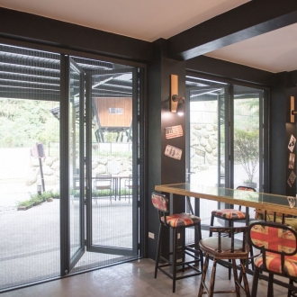 夜幕低垂時刻,拉上全景紗門可避開山間蚊蟲