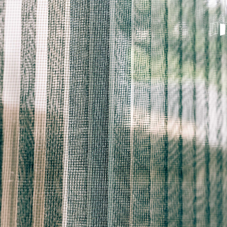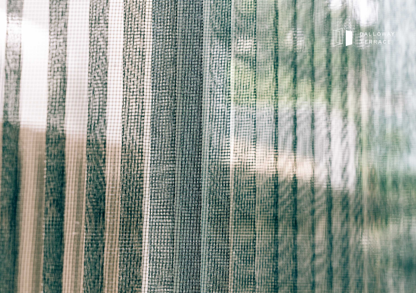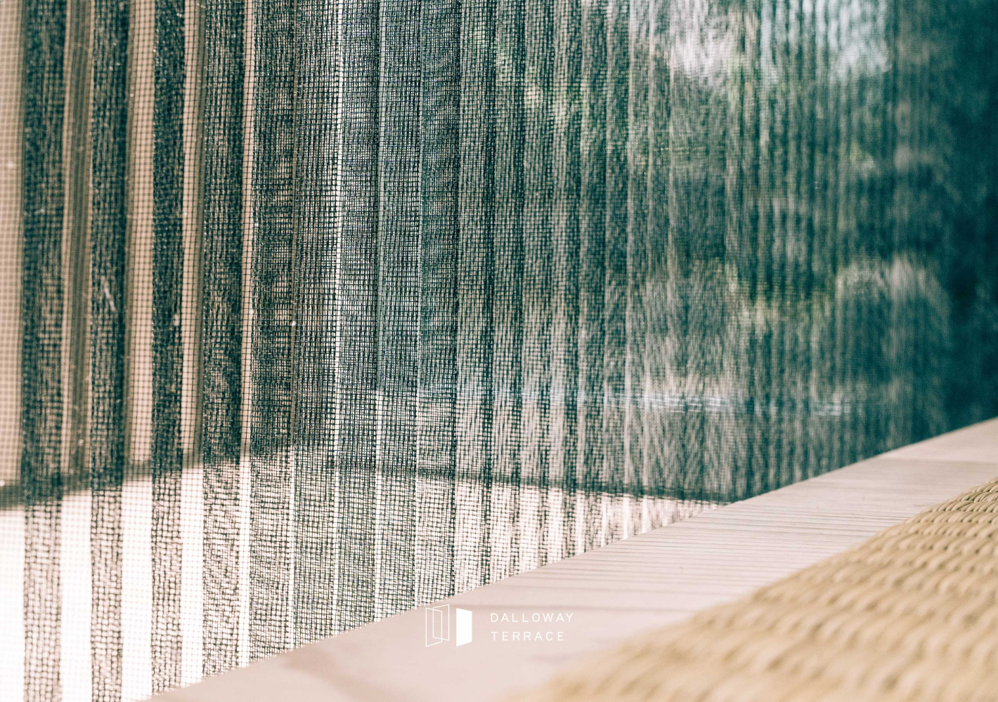 望著紗門外被網格柔化的朝陽