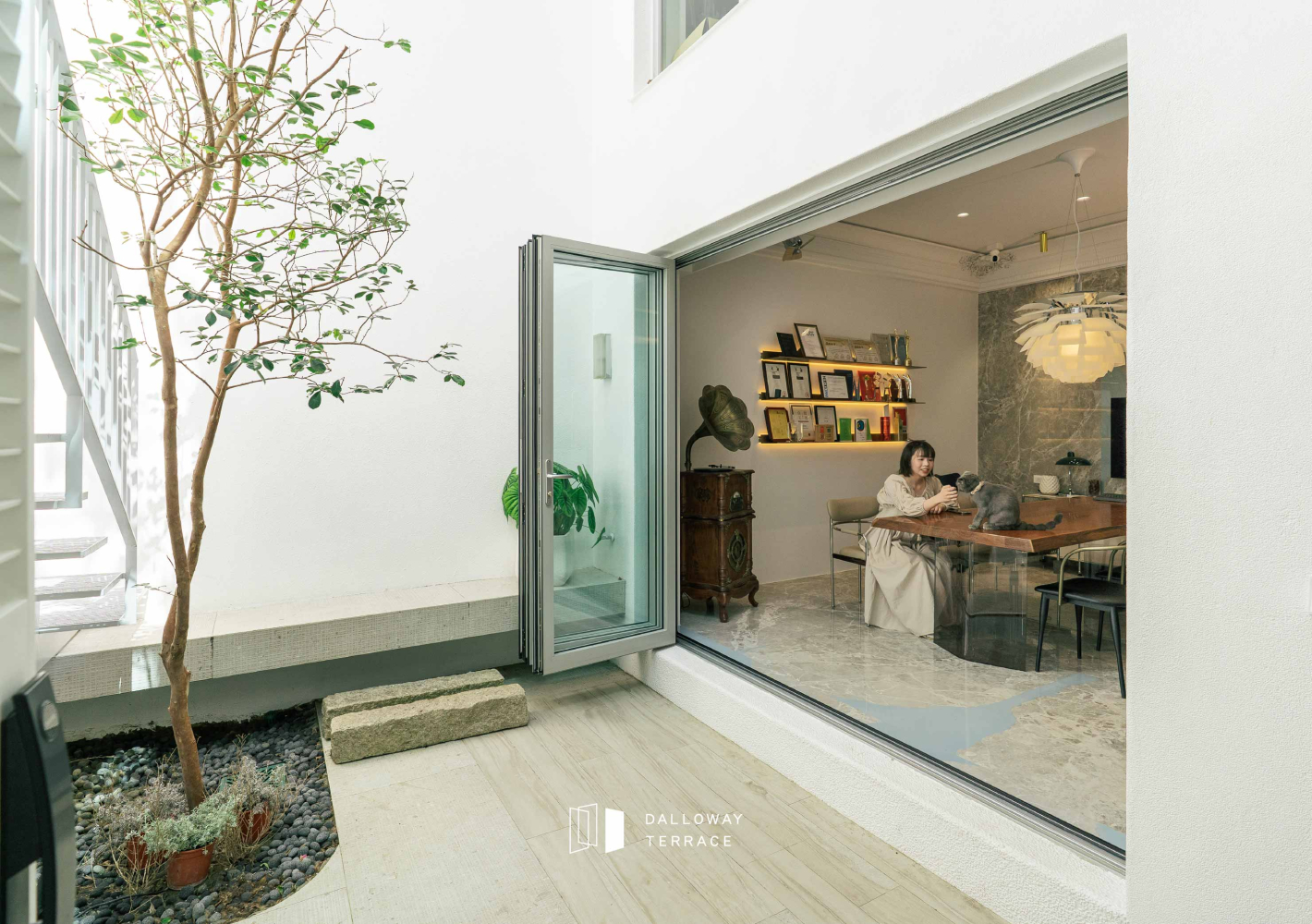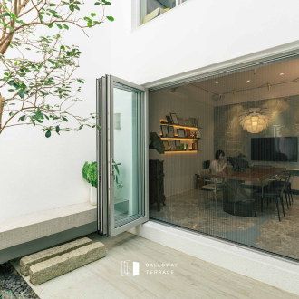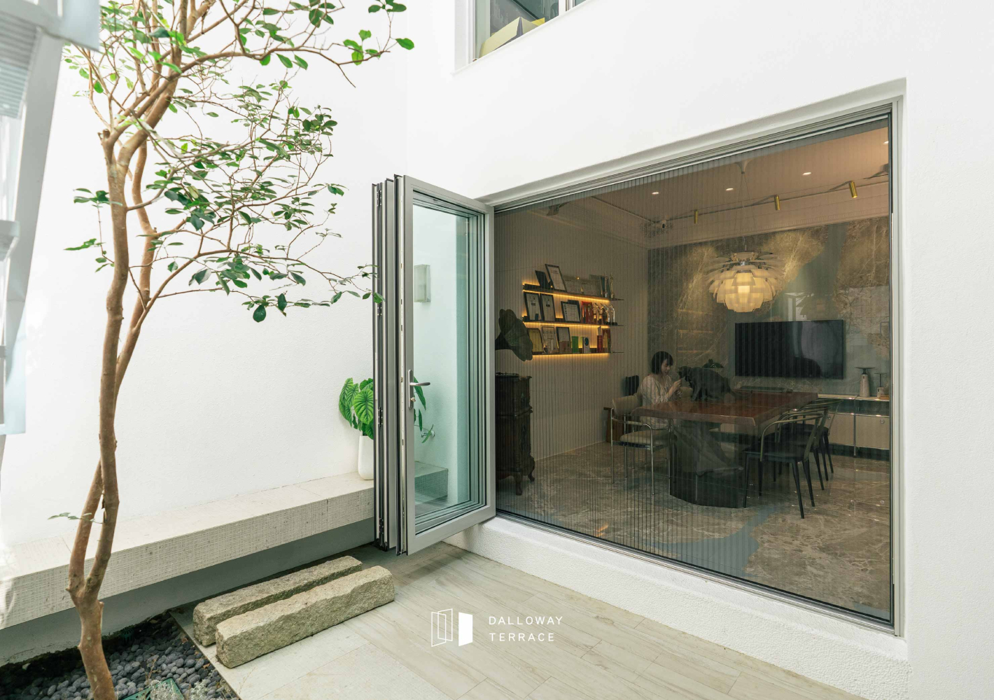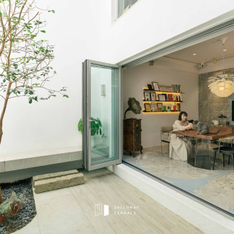 在本案三面採光的中庭設計中,達洛維摺疊門展現出完美優勢: