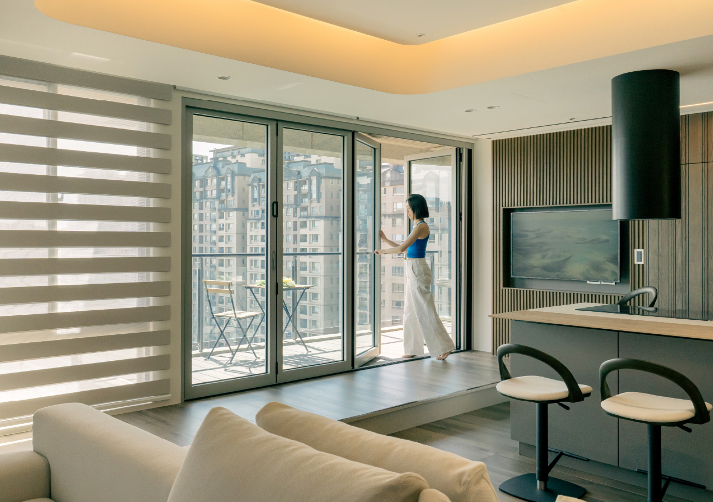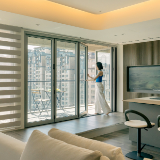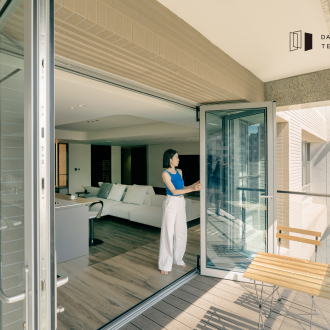 摺疊門的設計,正好回應業主的期望 關起時安靜隔防風,開啟時巧妙連結陽台與室內